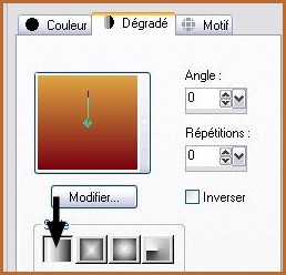 2 - Placer en avant-plan la couleur #790311 et en arrière-plan la couleur #dea542Dans la Palette de Style Configurer un dégradé linéaire angle: 0°/Répétition: 0