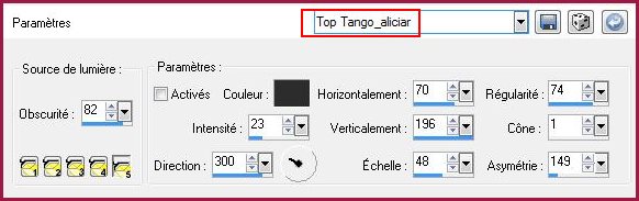 8 - Effets/Effets d'éclairage/Projecteurs rechercher le p reset Top Tango_aliciar