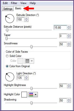 7 - Effets/Alien Skin Eye Candy 5 Impact/Extrude Onglet Settings: Small Offset, 3D Degree from Left