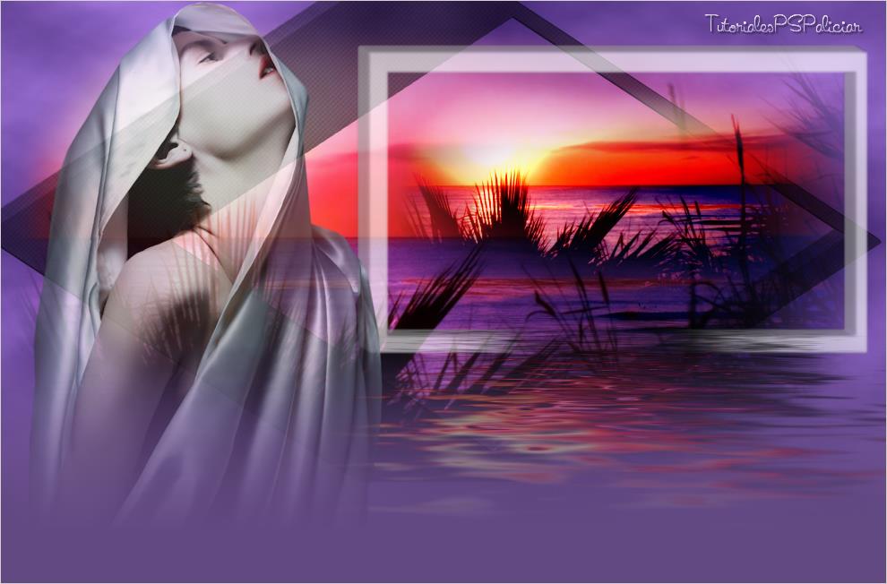 9 - Avec la baguette magique sélectionner le centre du cadre ( valeur: RVB /Tolérance et Progressivité à 0 /intérieur) **Couches/Nouveau calque Sélection/Sélectionner Tout **Activer le tube calguismistedsun5810.pspimage Modifier/Copier/Modifier/Coller dans la sélection Sélection/Ne rien sélectionner