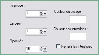 1 - Ouvrir une image transparente de 700 et 530 pixels Remplir de couleur #000000 2 - Effets/Effets de Textures/Textile avec ces réglages :