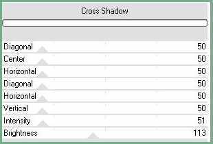 6 - Effets/Effets d'image/Mosaïque sans jointure réglages par défaut7 - Réglages/Flou/Flou gaussien : rayon : 20 8 - Effets/Graphic Plus/Cross Shadow réglages ci-dessous :