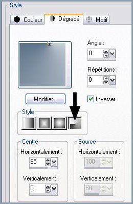 16 - Image/Ajouter des bordures : 30 pixels couleur #ffffff** Placer en avant-plan la couleur #244260 et en arrière-plan la couleur # ffffffConfigurer un dégradé radial /angle: 0/répétition: 0°/Inverser coché
