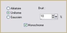 16 - Réglages/Ajouter du bruit/Ajouter du bruit : Uniforme/Monochrome cochés /bruit : 15%