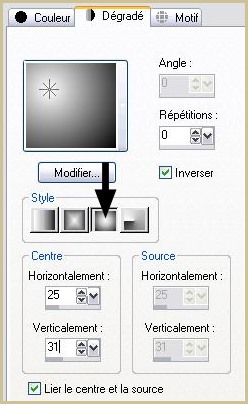 38 - Calques/Nouveau calque Remplir de dégradé halo/ avant-plan couleur #000000/arrière-plan couleur #ffffffH = 25/ V= 31