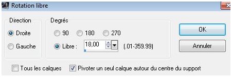 6 - Image/Rotation libre de 18° à droite cocher : Pivoter un seul calque autour du centre du support