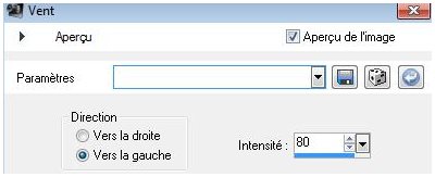 7 - Effets/Effets de Déformation/Vent réglages suivants :