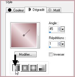 4 - Couches/Nouveau calque remplir de dégradé linéaire, angle : 45°/répétition: 1 avant-plan couleur #975e61 / arrière-plan couleur #efe0e3