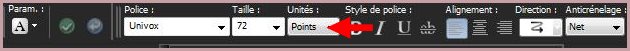 7 - Activer l'outil Texte/Police Univox/taille : 72 Points avant-plan fermé /couleur arrière-plan #000000