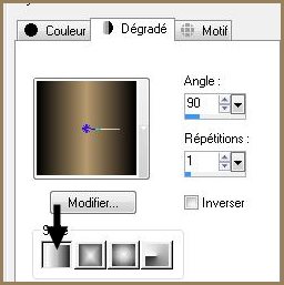 2 - Placer en avant-plan la couleur #000000 et en arrière-plan la couleur #b79a6f Dans la Palette de Style Configurer un dégradé linéaire angle: 90°/Répétition : 1