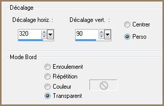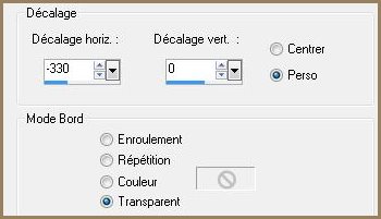 14 - Activer le tube kikirou1567_Mother_Africa_by_BenHeine .pspimage Modifier/Copier/Modifier/Coller comme nouveau calque Image/Miroir Image/Redimensionner à 90%/décocher " tous les calques" **Effets/Effets d'image/décalage