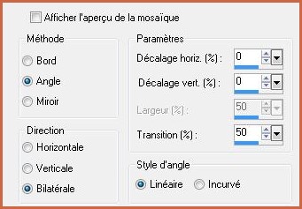 **Effets/Effets d'image/Mosaïque sans jointure réglages par défaut