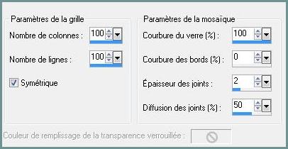 **Effets/Effets de Textures/ Mosaïque de verre réglages suivants:
