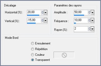 5 - Effets/Effets déformation/Rayonnement réglages suivants :
