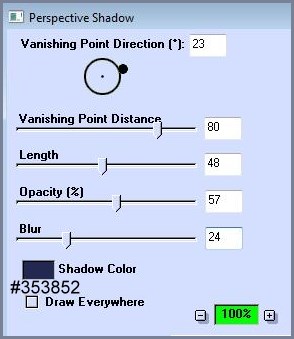 18 - Effets/ Eye candy3.0/Perspective Shadow réglages suivants :