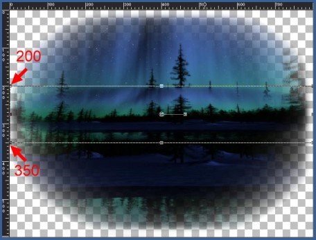 ** A l'aide de l'outil "Déformation" placer le haut de la copie au point 200 et le bas à 350