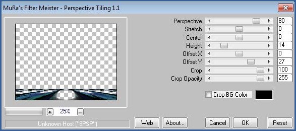 7 - Couches/Dupliquer Image/Retourner Sur la copie ** Effets/Mura's Meister/Perspective Tiling réglages suivants:
