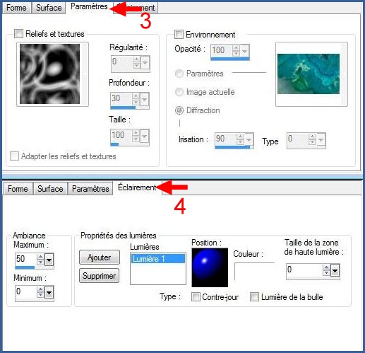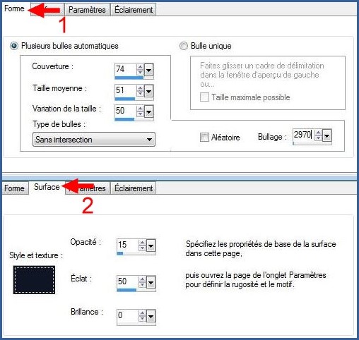 13 - Effets/Effets de Déformation/ bulle réglages suivants :