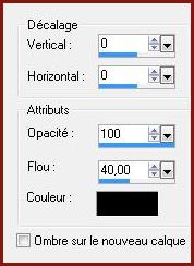 4 - Effets/Effets 3D/Ombre Portée : 0/0/100/40/couleur #000000