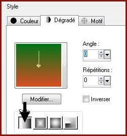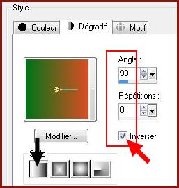 18 - Couches/Nouveau calque **Couches/Arranger/Déplacer vers le bas Remplir de dégradé linéaire angle: 90°/Répétition: 0/ inverser coché