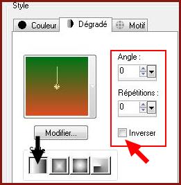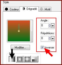 20 - Couches/Nouveau calque Remplir de dégradé linéaire angle: 0°/Répétition: 0/ inverser coché
