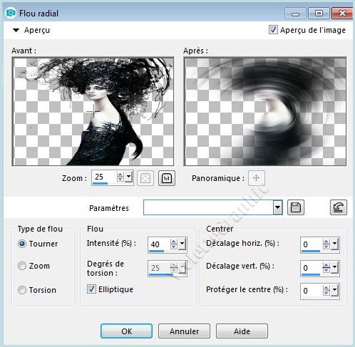 4 - Réglages/Flou/Flou radial réglages suivants :