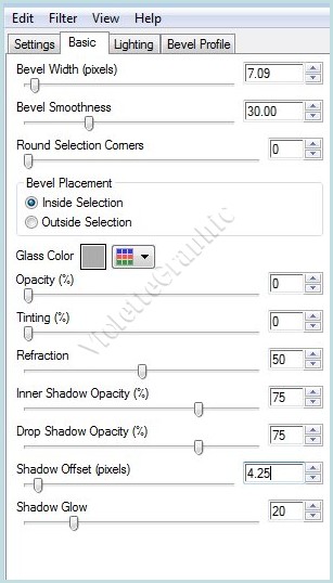 7 - Effets/Alien Skin Eye Candy 5 /Glass/preset "Clear" réglages suivants: