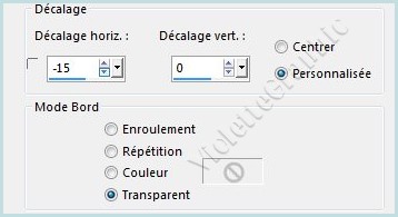 14 - Activer le tube Image5.pspimage Edition/Copier/Edition/Coller comme nouveau calque ** Effets/Effets d'image/Décalage réglages suivants :