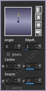 **Dans la Palette de Style Configurer un dégradé linéaire angle: 0°/Répétition: 1/Inverser non coché