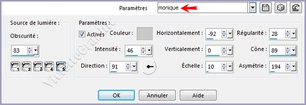 **Effets/Effets d'éclairage/projecteurs réglages suivants :