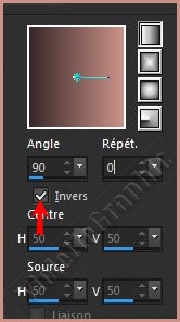 **Dans la Palette de Style Configurer un dégradé linéaire angle: 90°/Répétition: 0/Inverser coché