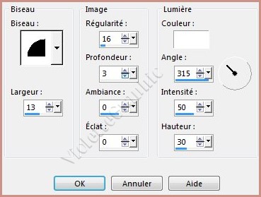 ** Effets/Effets 3D/Biseautage Intérieur réglages suivants :