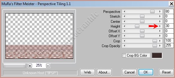 6 - Calques/Dupliquer Image/Redimensionner à 80%/décocher " Redimensionner tous les calques" **Effets/Mura's Meister/Perspective Tiling réglages suivants :