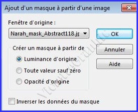 5 - Activer le masque Narah_mask_Abstract118.jpg Calques/Nouveau calque de masque/à partir d'une image/Ajout d'un masque à partir d'une image sélectionner le masque Narah_mask_Abstract118.jpg