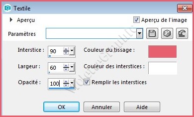 3 - Effets/Effets de Textures/Textile réglages suivants :