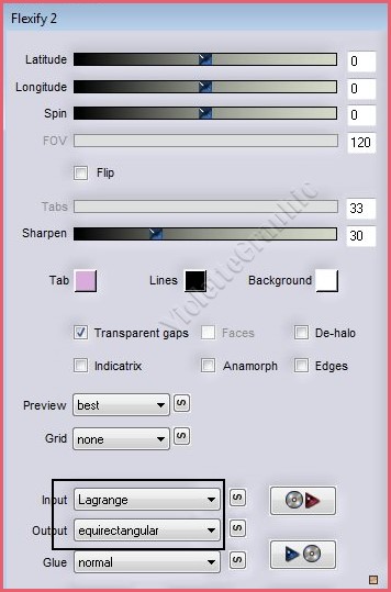 **Effets/Mura's Meister/Pole transformation réglages suivants : clic sur Reset/clic sur OK