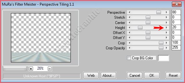 10 - Activer le calque du paysage ( calque 4 )**Calques/Dupliquer **Réglages/Flou/Flou gaussien : rayon : 40 **Effets/Mura's Meister/Perspective Tiling réglages suivants :