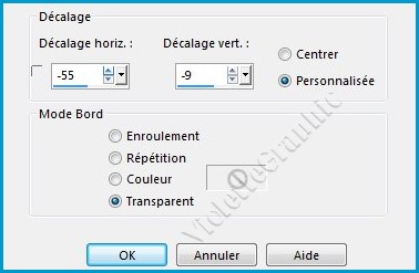 13 - Activer le tube "K @ rine_dreams_Lady_Flowers__3393_Avril_2016" Edition/Copier/Edition/Coller comme nouveau calque ** Calques/Réorganiser/Déplacer vers le hautImage/Redimensionner à 85%/décocher " Redimensionner tous les calques" Réglages/Netteté/Netteté Effets/Effets d'image/Décalage réglages suivants :