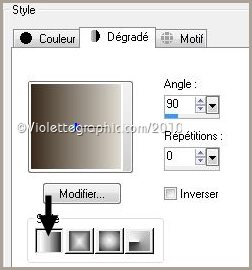 3 - Placer en avant-plan la couleur #38291b et en arrière-plan la couleur #dfdad0 Dans la Palette de Style Configurer un dégradé linéaire angle: 90°/Répétition: 0/Inverser coché