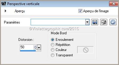 6 - Effets/ Effets Géométriques/Perspective Vertical réglages suivants :