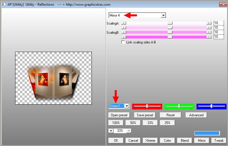 11 - Effets/ Filtre AP [Utility] Reflections / réglages suivants : Mirror 4 - Sheen1