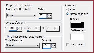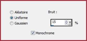 6 - Réglages/Ajouter du bruit/Ajouter du bruit réglages suivants :
