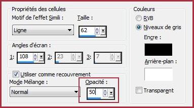 17 - Effets/Effets Artistiques/Simili réglages suivants : Opacité à 50%