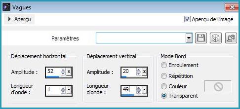 5 - Couches/Dupliquer Effets/Effets de Distorsion/Vagues réglages suivants :