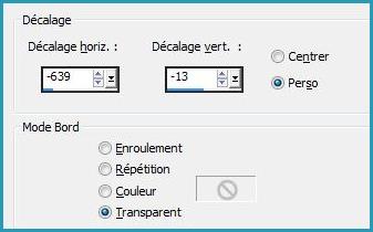 8 - Couches/Dupliquer ( le calque 3 ) Effets/Effets d'image/décalage réglages suivants :