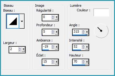 11 - Effets/Effets 3D/Biseautage Intérieur réglages suivants :