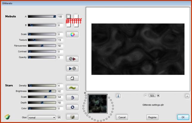 2 - Effets/ Flaming Pear/Glitterato (Nébula couleur #ffffff) réglages suivants :