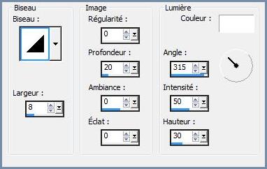 4 - Effets/Effets 3D/Biseautage Intérieur réglages suivants :
