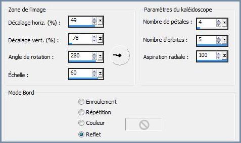 13 - Effets/Effets de Réflexion/Kaleidoscope réglages suivants :