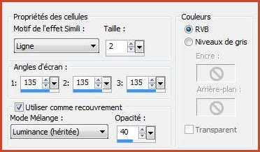 7 - Effets/Effets Artistiques/Simili réglages suivants :